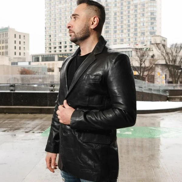 Blazer in Pelle Nera da Uomo Stile Western