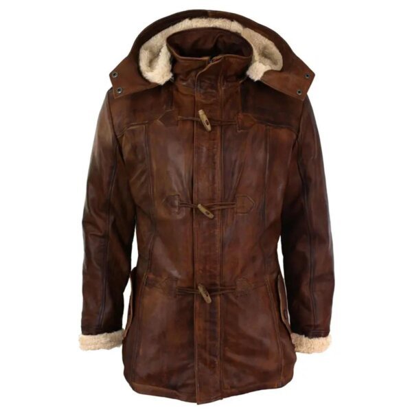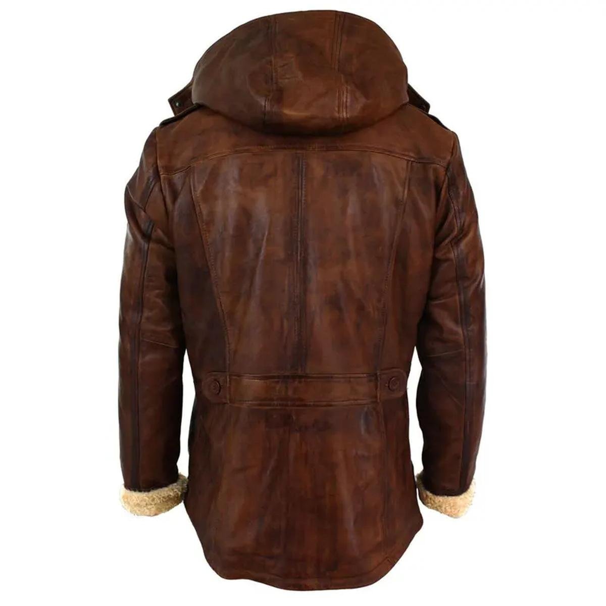 Cappotto Lungo Uomo in Pelle con Cappuccio