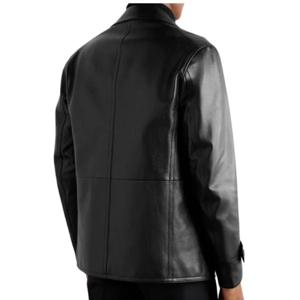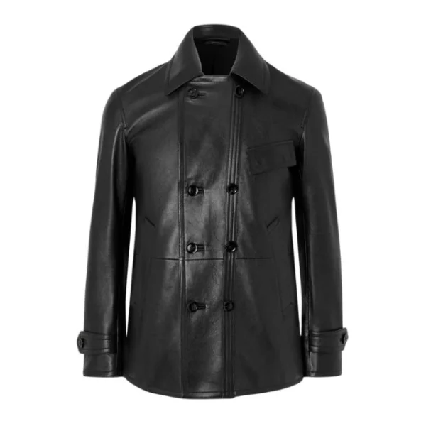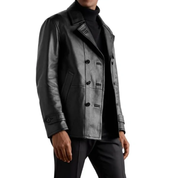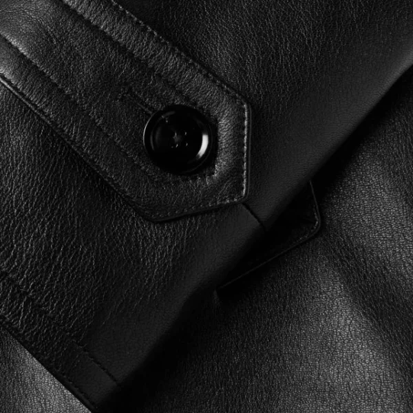 Cappotto doppiopetto nero in pelle di pecora da uomo