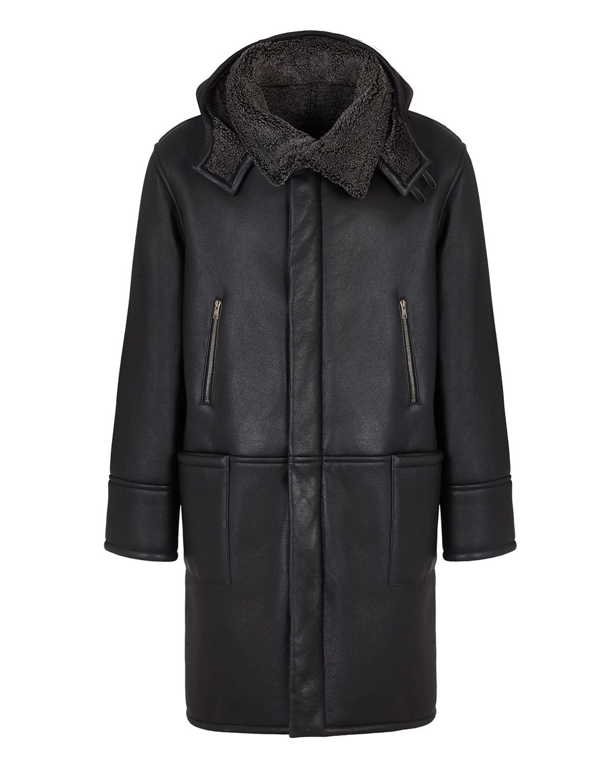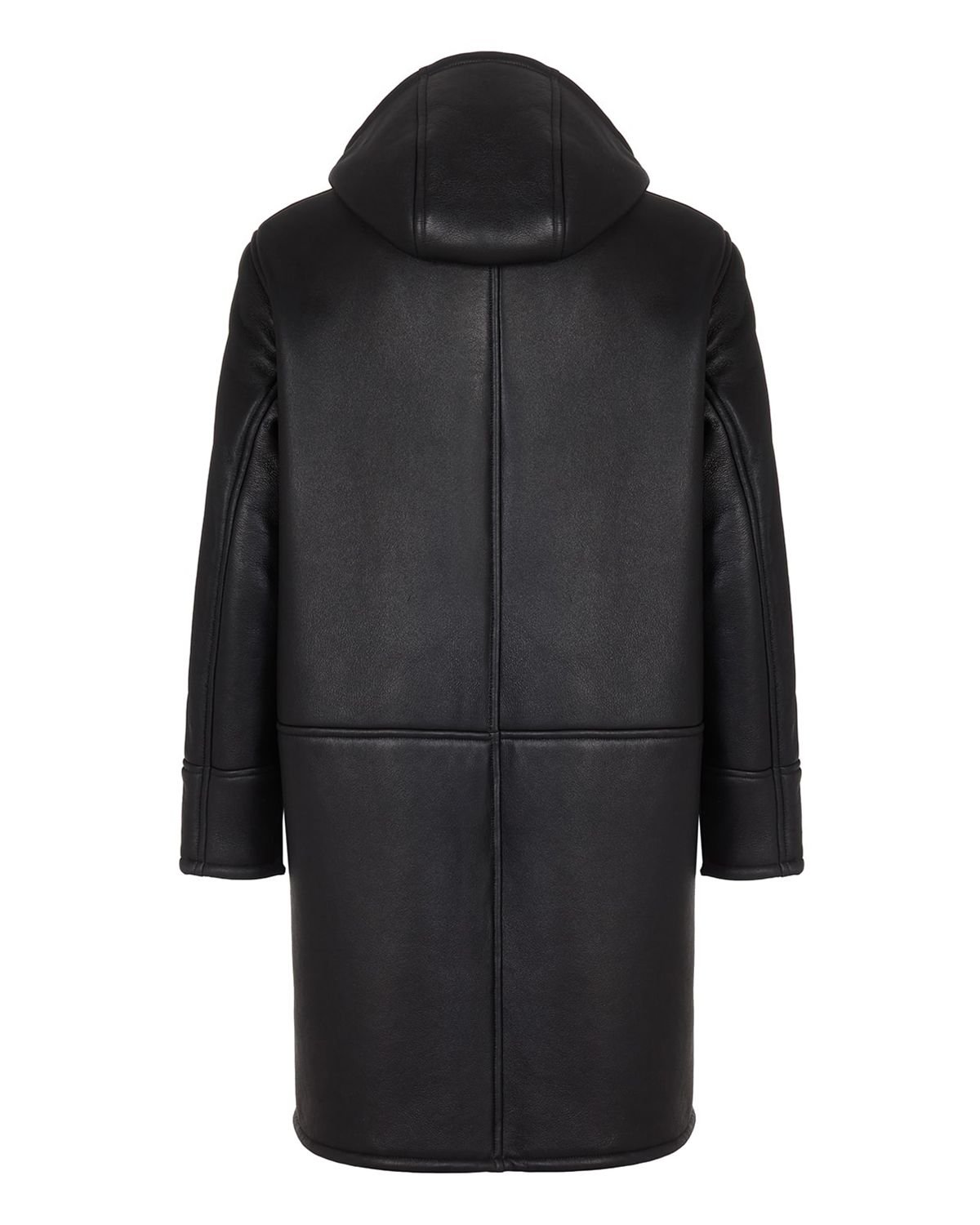 Cappotto in pelle di pecora con cappuccio da uomo, nero