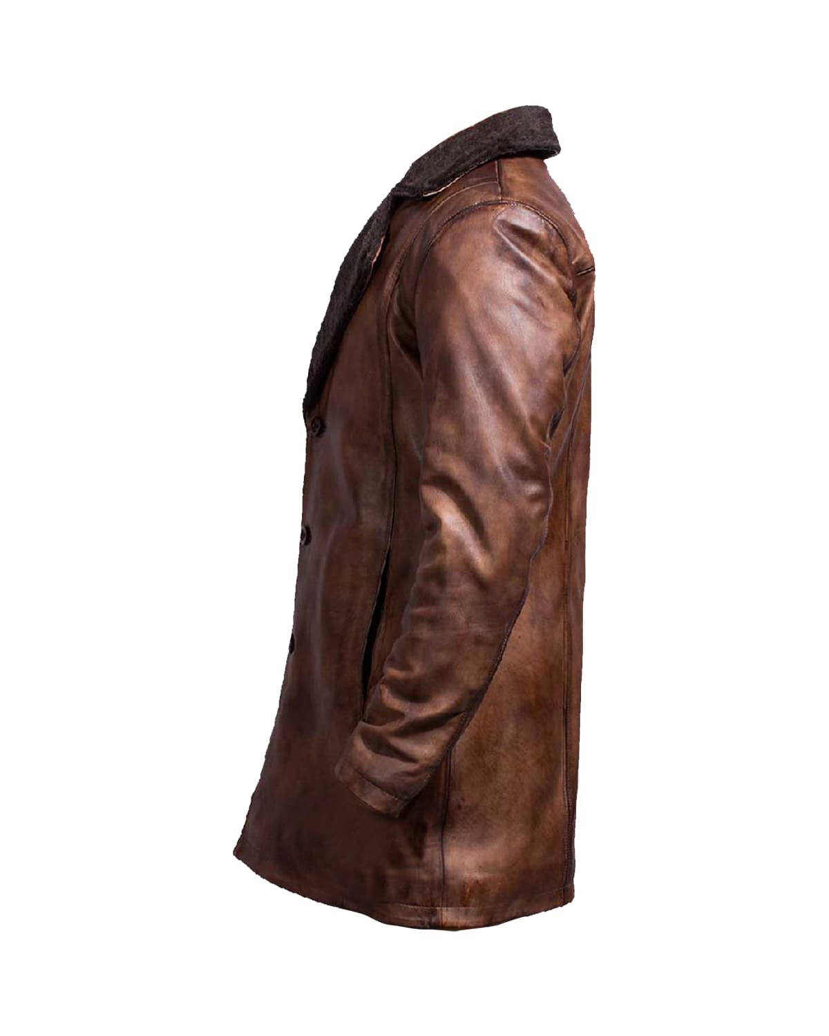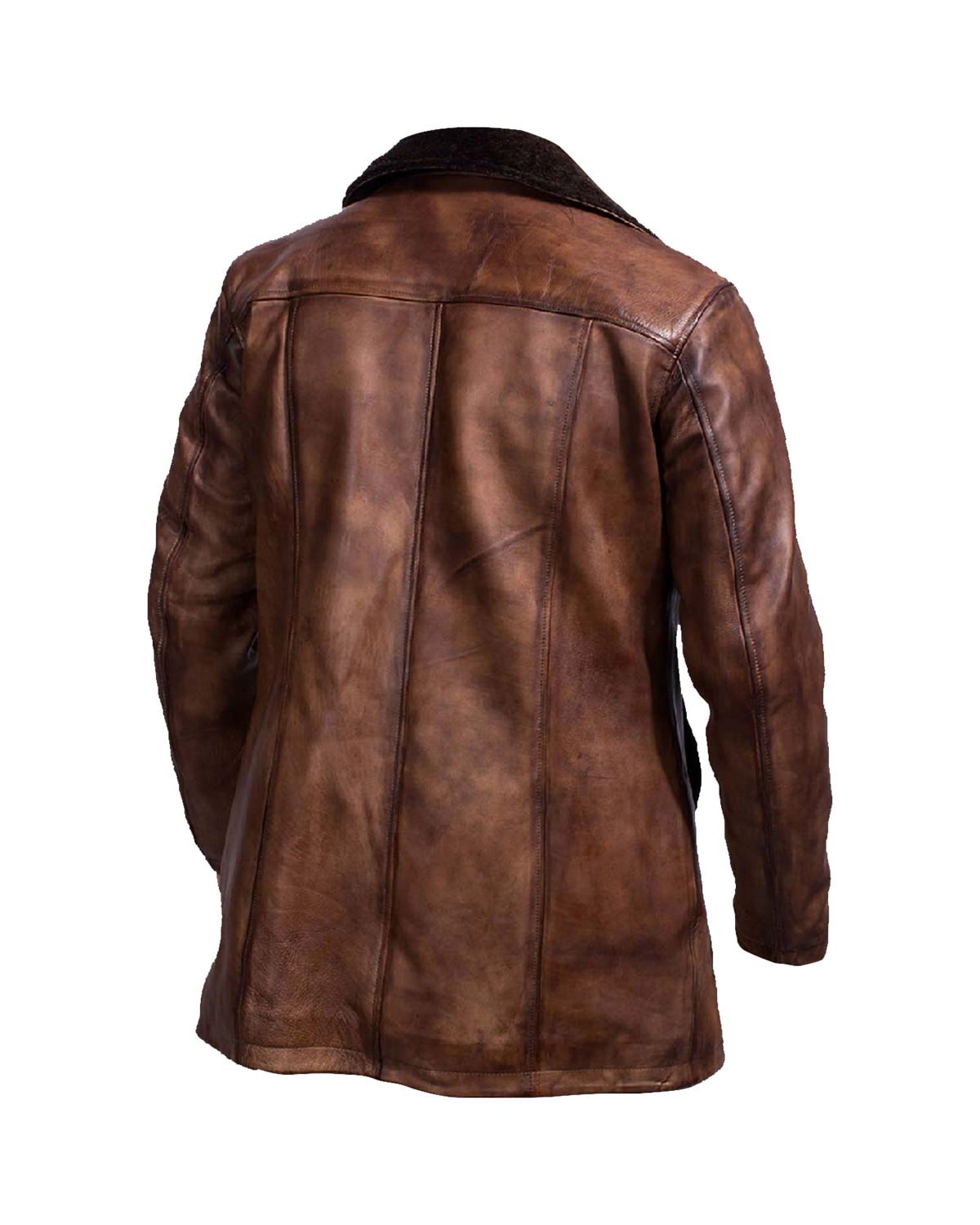 La finitura distressed della vera pelle marrone conferisce al cappotto un carattere unico e un fascino vissuto, distinguendoti dalla folla.