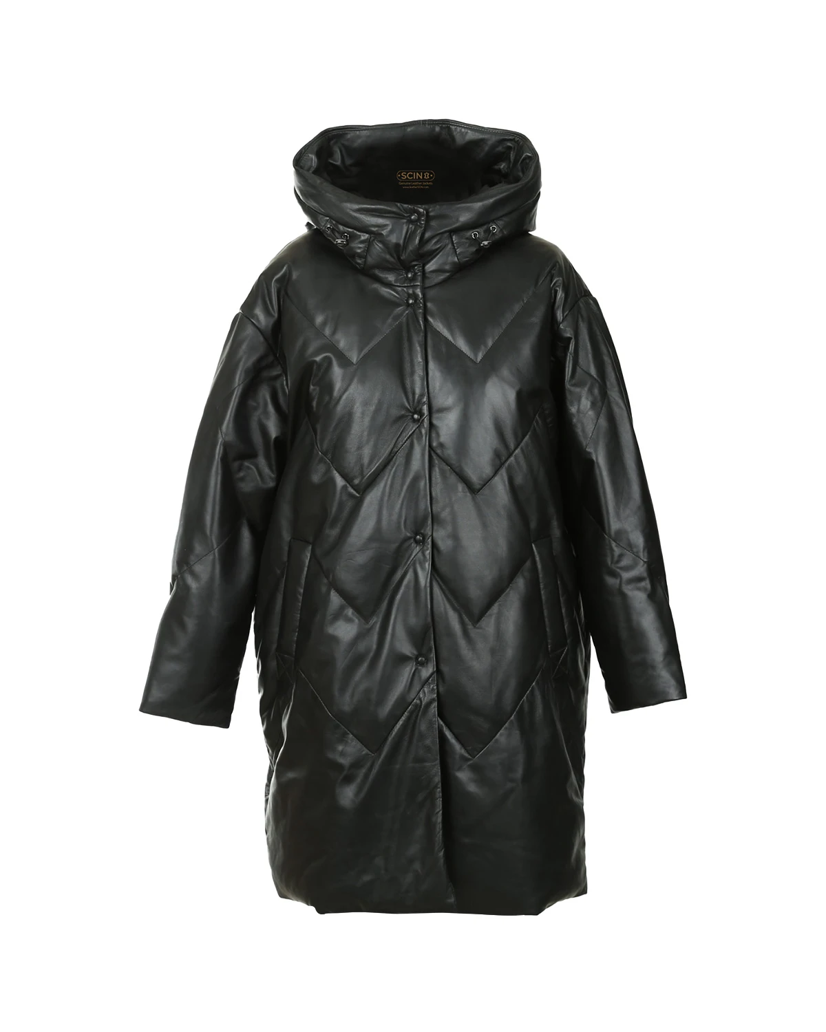Cappotto lungo imbottito in pelle da donna