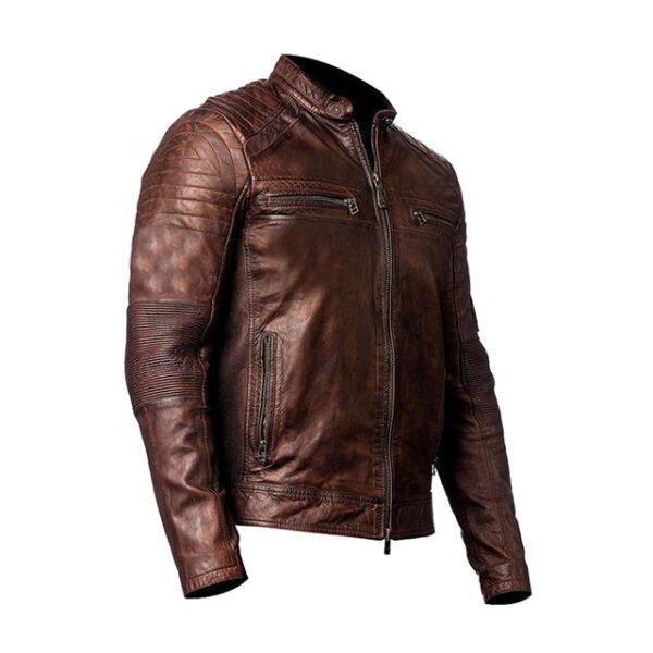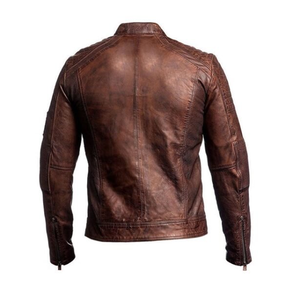 Introducing our Mash Men’s Cafe Racer Leather Jacket , a stylish and distinctive piece. Handcrafted from 100% premium genuine cowhide leather , this jacket boasts a dual-tone wax finish in an antique brown color that exudes timeless appeal.