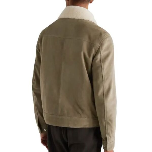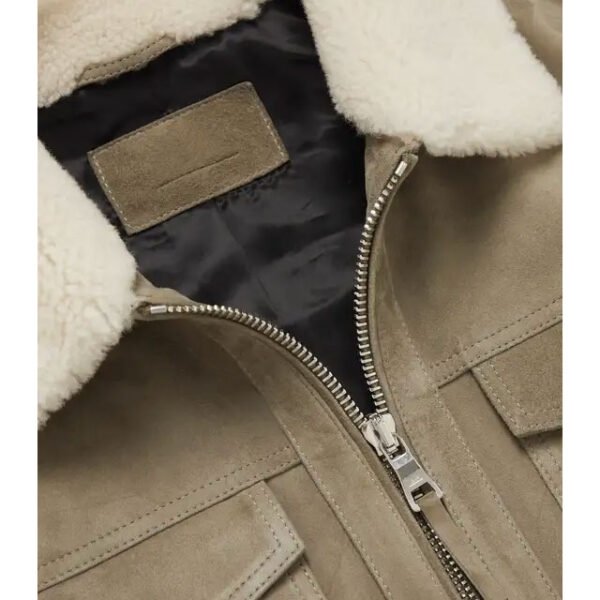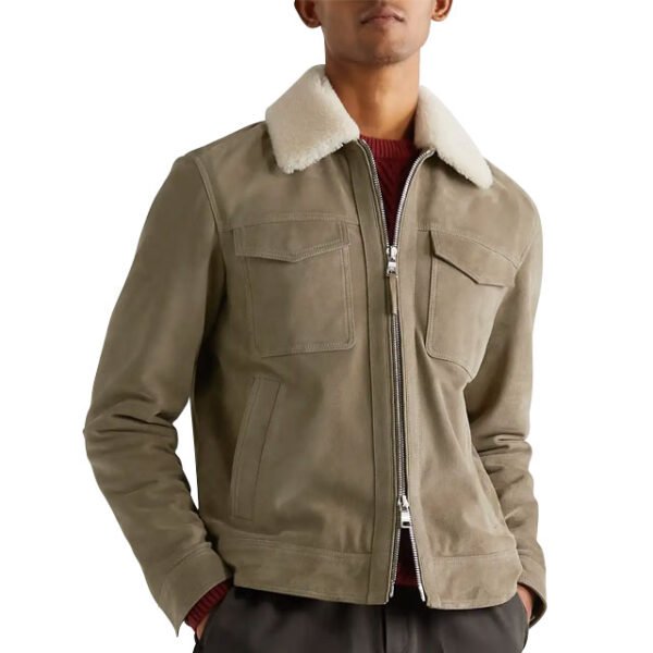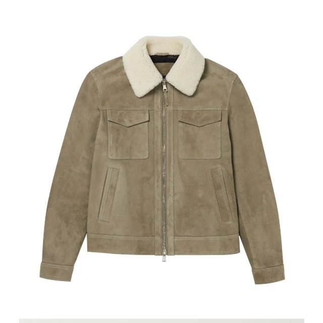 Giacca Camionista in Pelle Scamosciata con Finiture Shearling