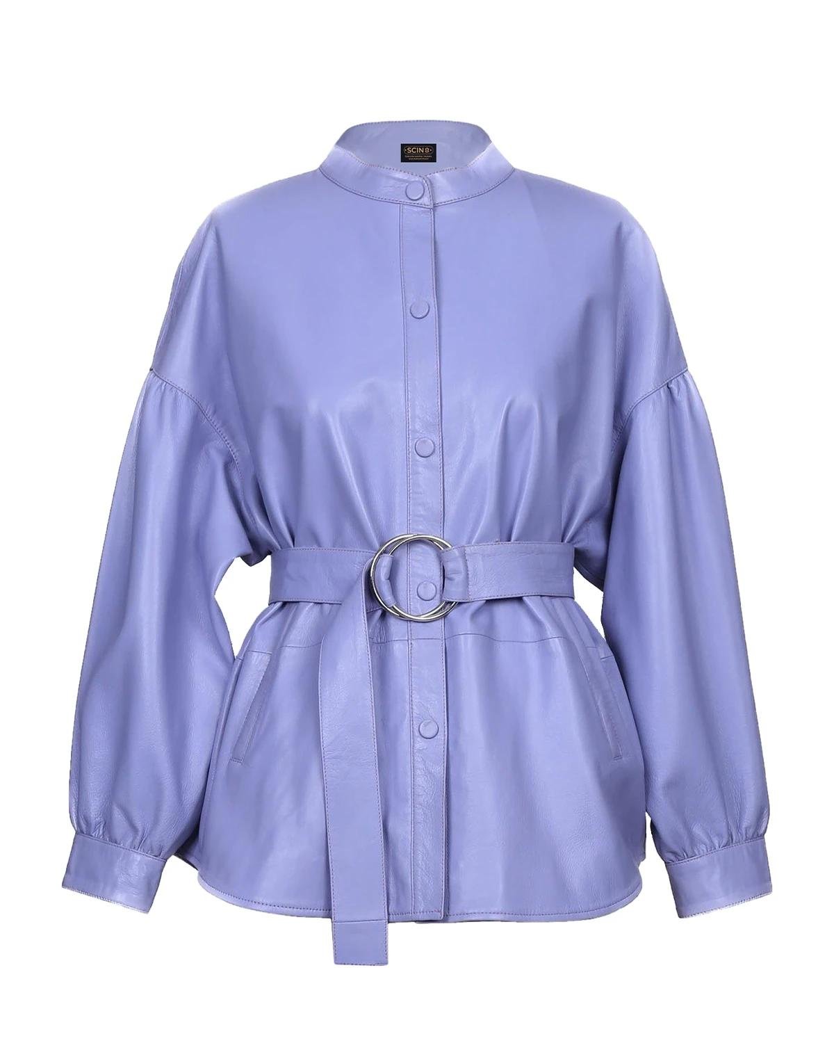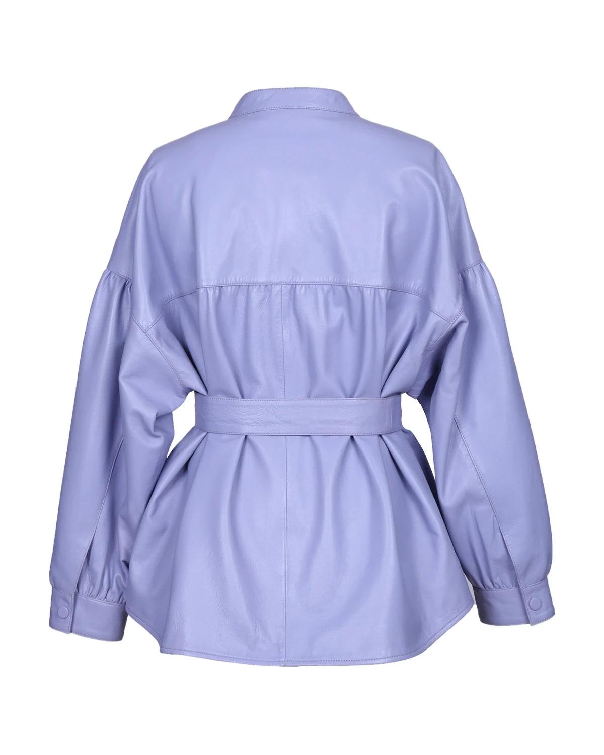 Giacca-Camicia in Pelle di Pecora Lavanda con Cintura
