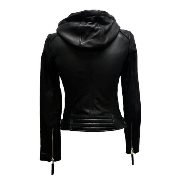 Giacca da Motociclista Classica in Pelle da Donna con Cappuccio