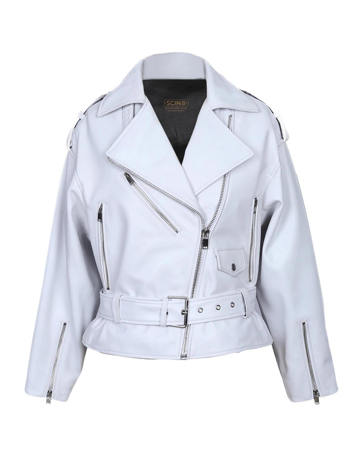 Immergiti nell’eleganza senza tempo con la nostra giacca da motociclista classica da donna in pelle di pecora bianca, un vero simbolo di artigianalitร e lusso. Realizzata in morbidissima pelle di pecora, questa giacca รจ progettata per essere un’espressione della tua individualitร e del tuo stile distintivo.