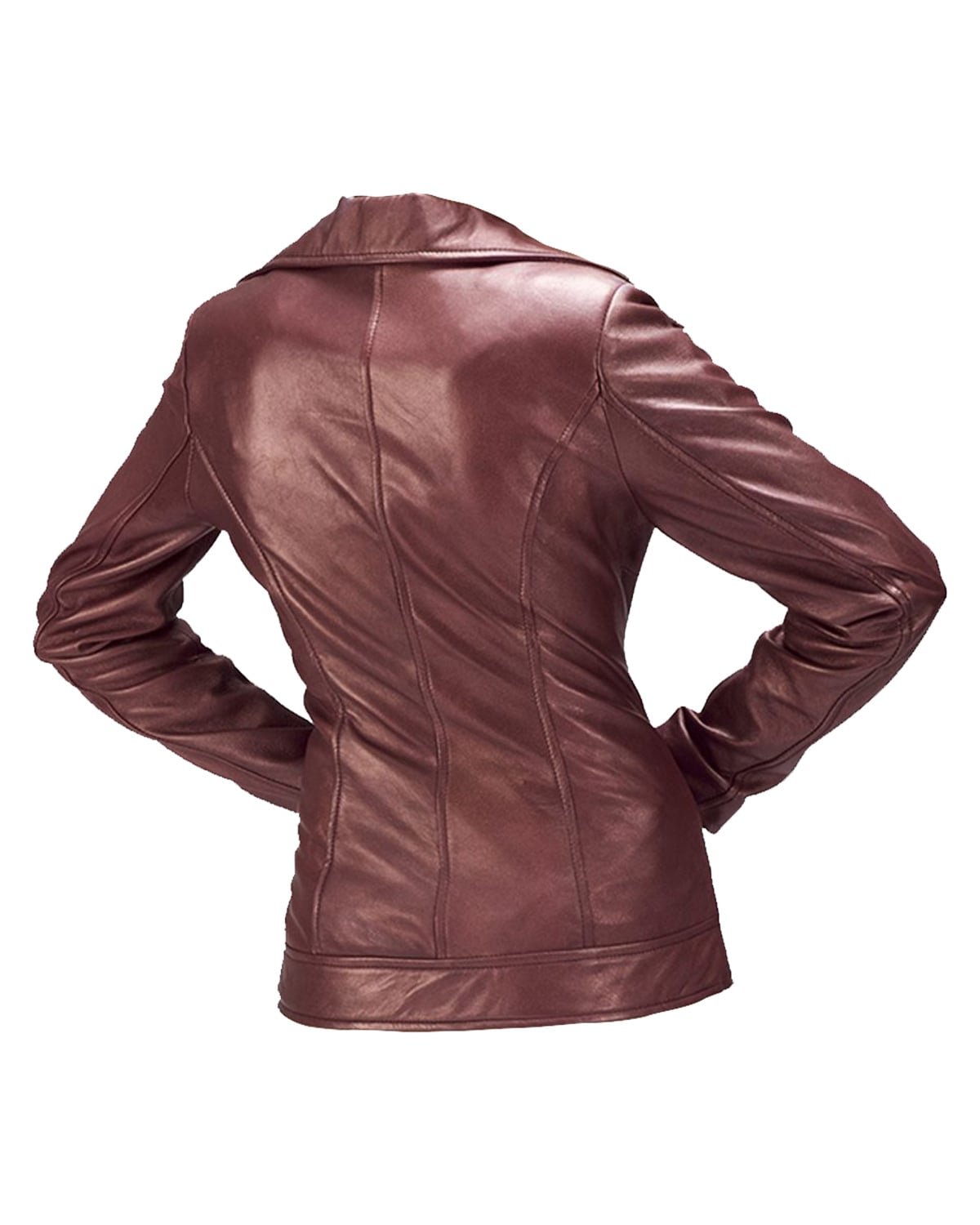 Giacca Biker Classica da Donna in Pelle di Pecora Marrone Profondo