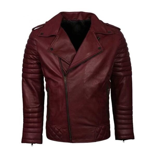 Giacca Motociclista Classica Trapuntata in Pelle Bordeaux
