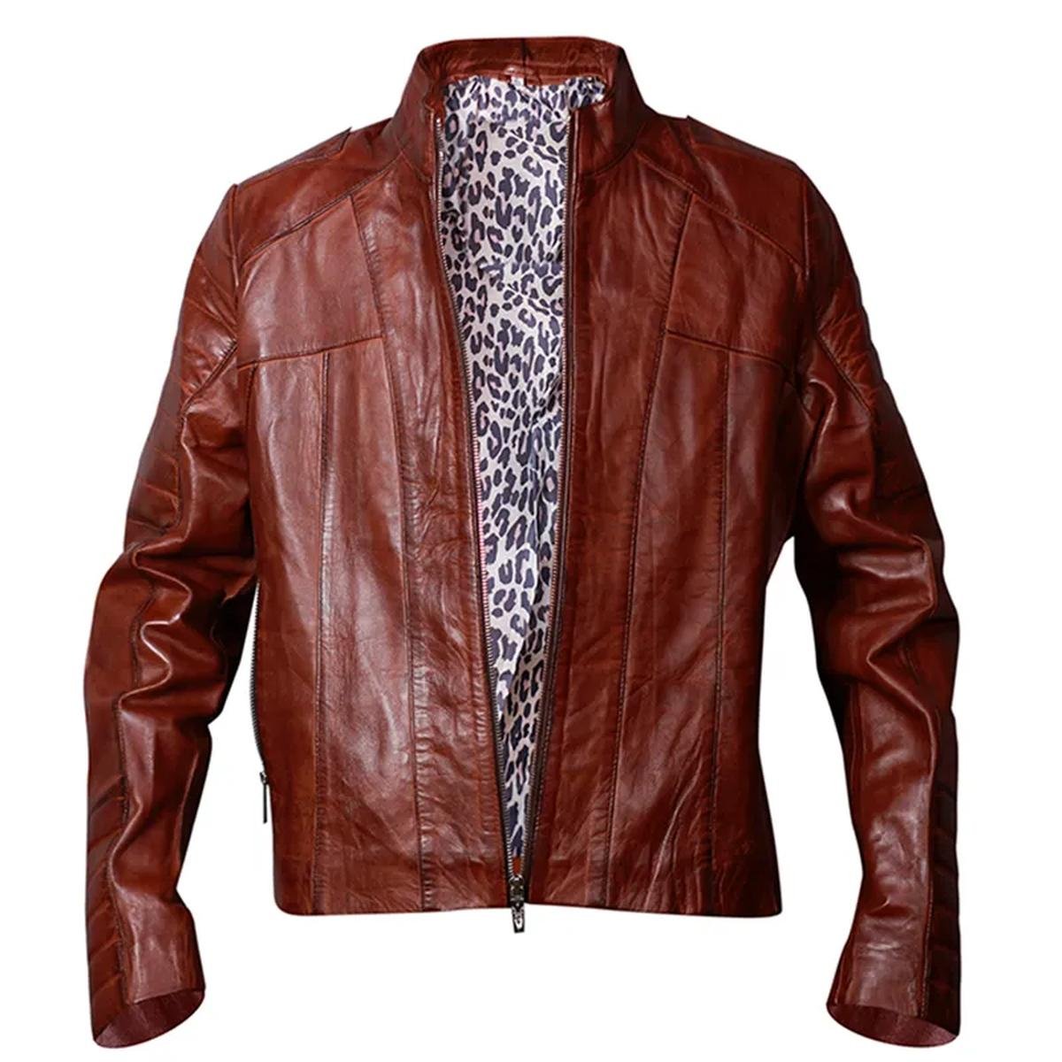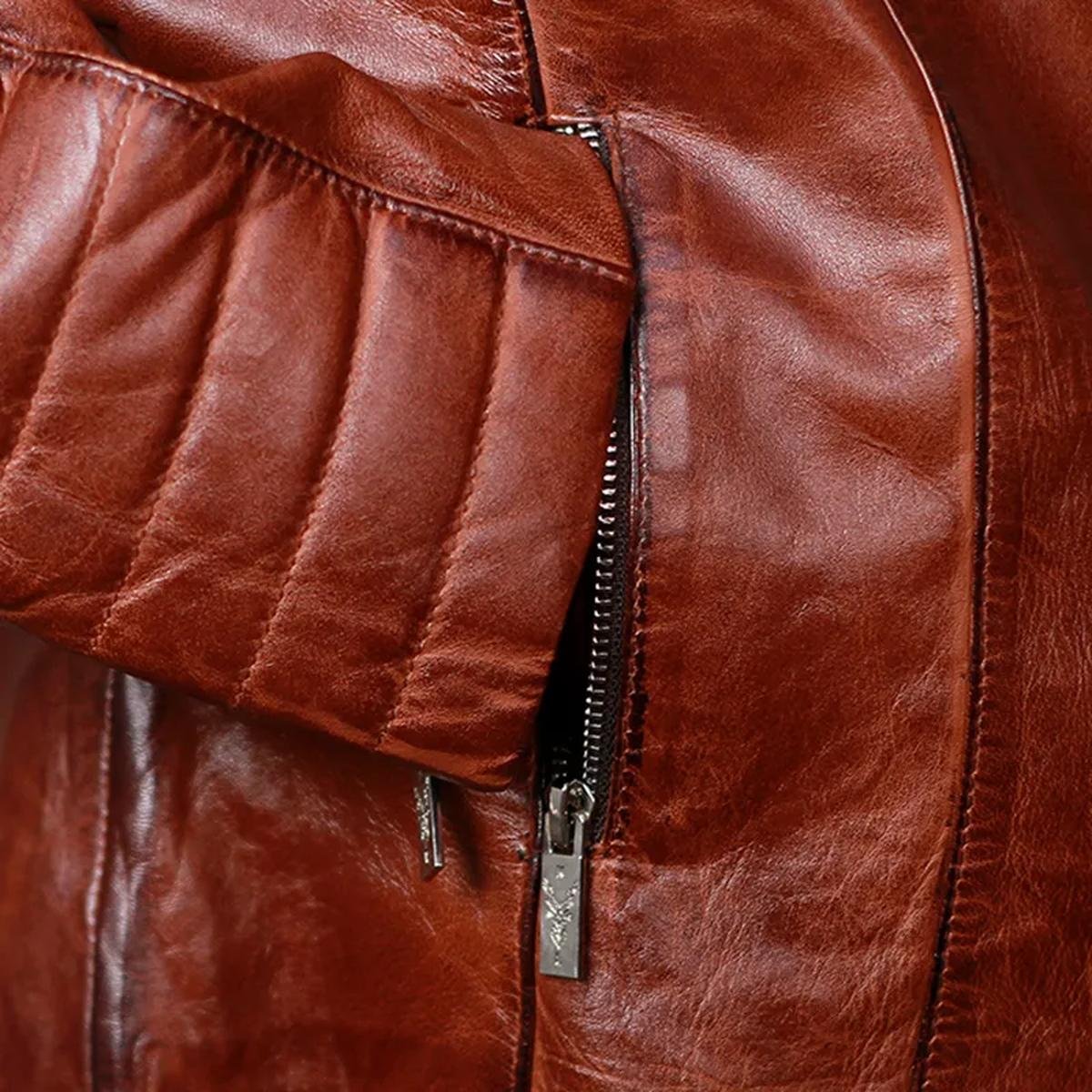 Giacca in Pelle Cafe Racer Classica Marrone