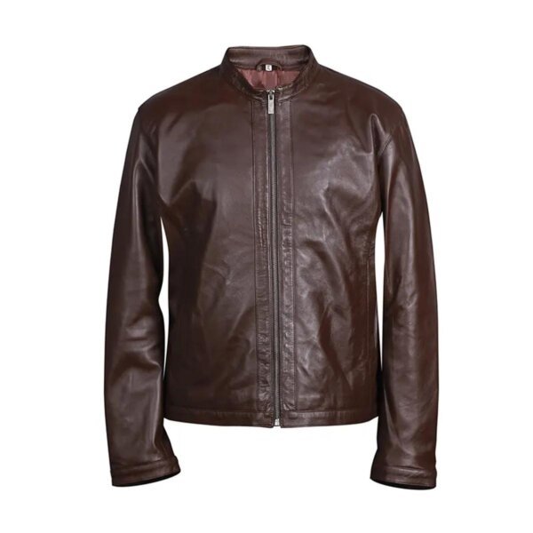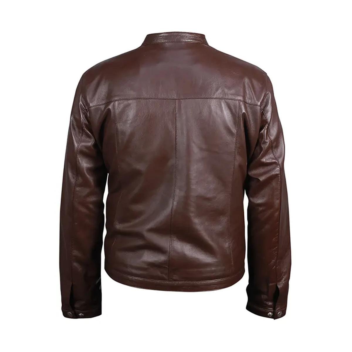 Giacca da motociclista in pelle marrone cioccolato da uomo