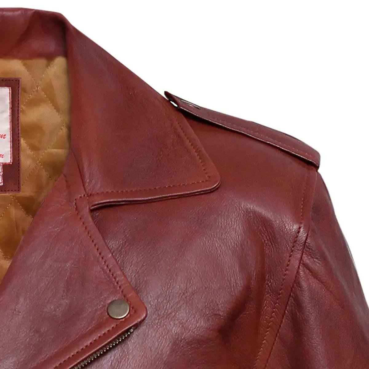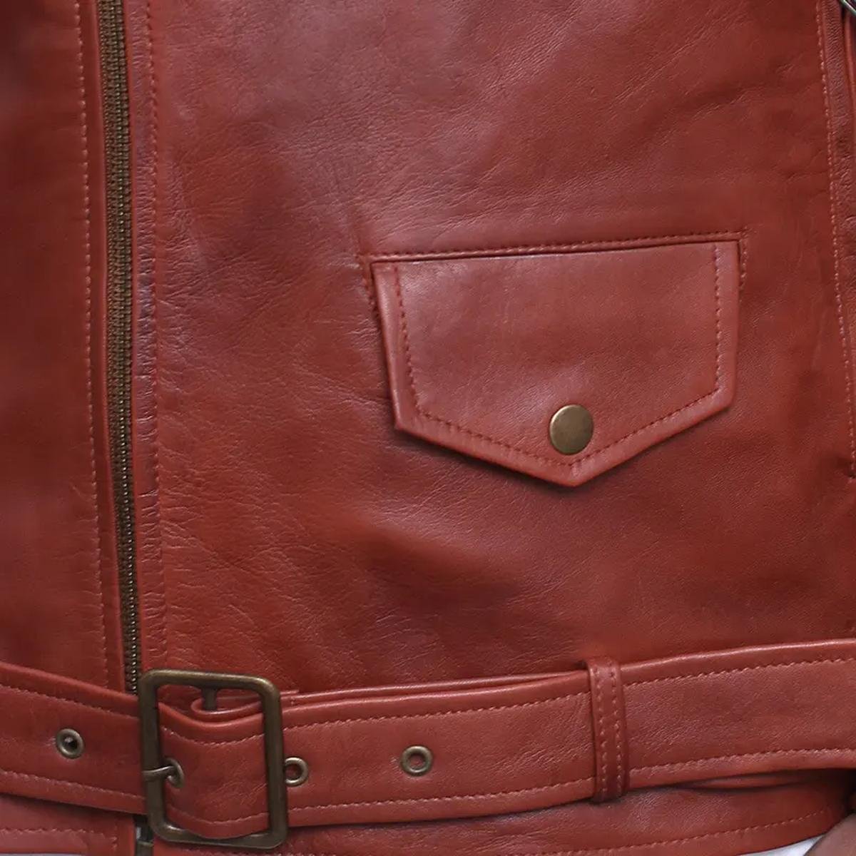 La nostra splendida giacca da motociclista รจ realizzata in vera pelle bovina di qualitร  superiore, scelta per la sua resistenza e il suo fascino inconfondibile. Il suo colore marrone intenso la rende un capo distintivo e accattivante, perfetto per chi cerca un’alternativa elegante al classico nero.