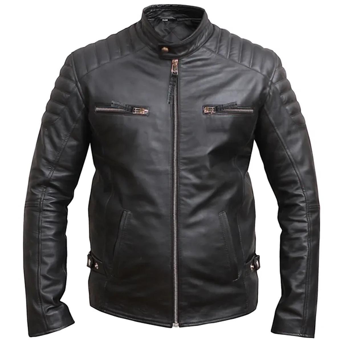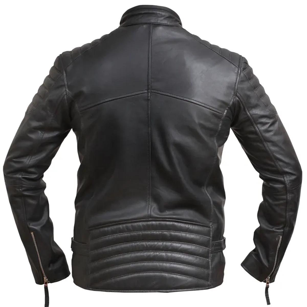 Giacca da Motociclista in Pelle Nera Anticaca da Uomo