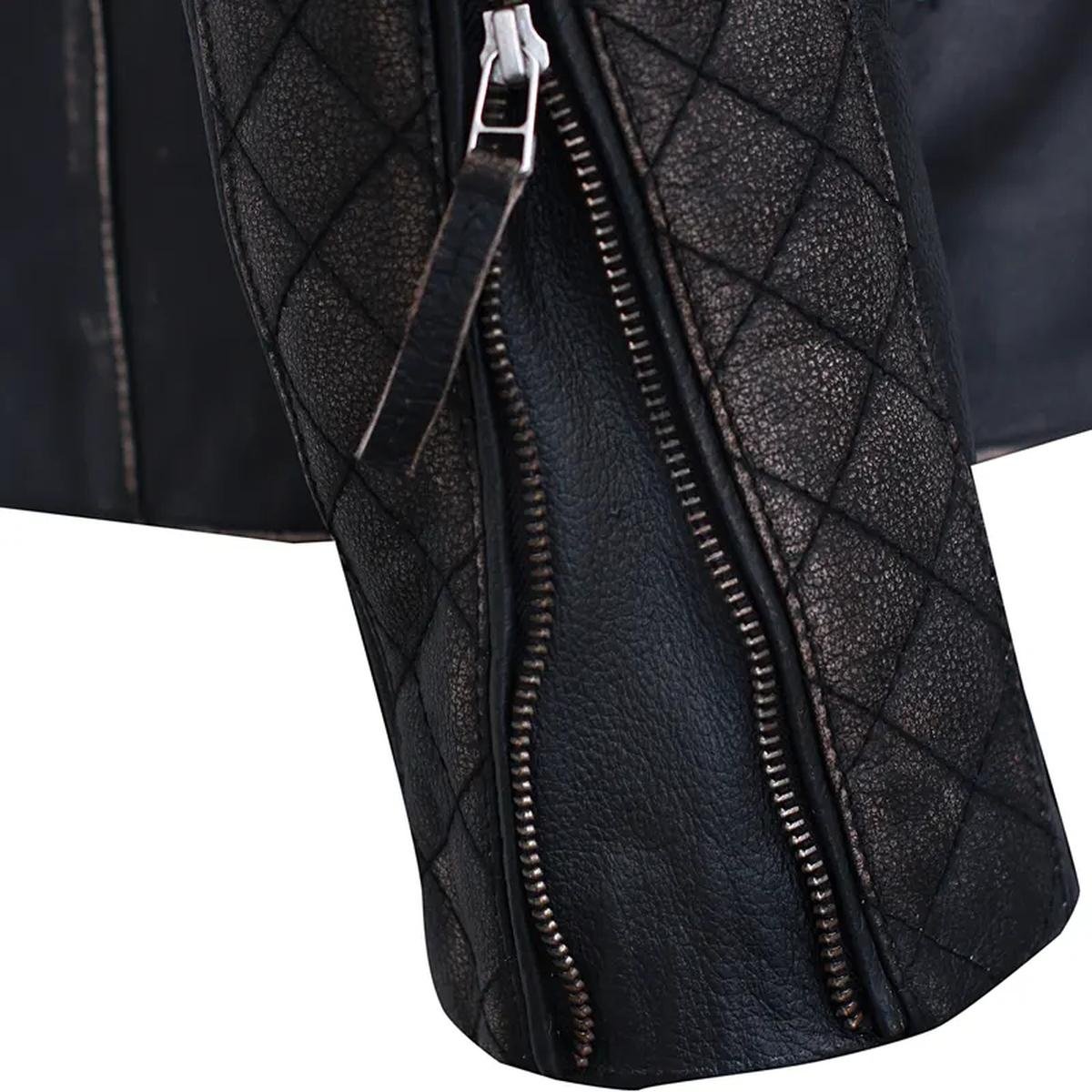 Questa giacca è realizzata con vera pelle premium, trattata per ottenere un autentico look vintage nero invecchiato. La sua costruzione robusta la rende ideale sia per affrontare la strada con stile che per aggiungere un tocco di carattere al tuo outfit quotidiano, garantendo durata e una vestibilità che migliora con il tempo.