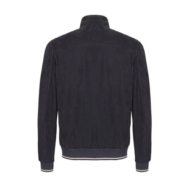 Giacca Biker in Vera Pelle Scamosciata Blu Navy