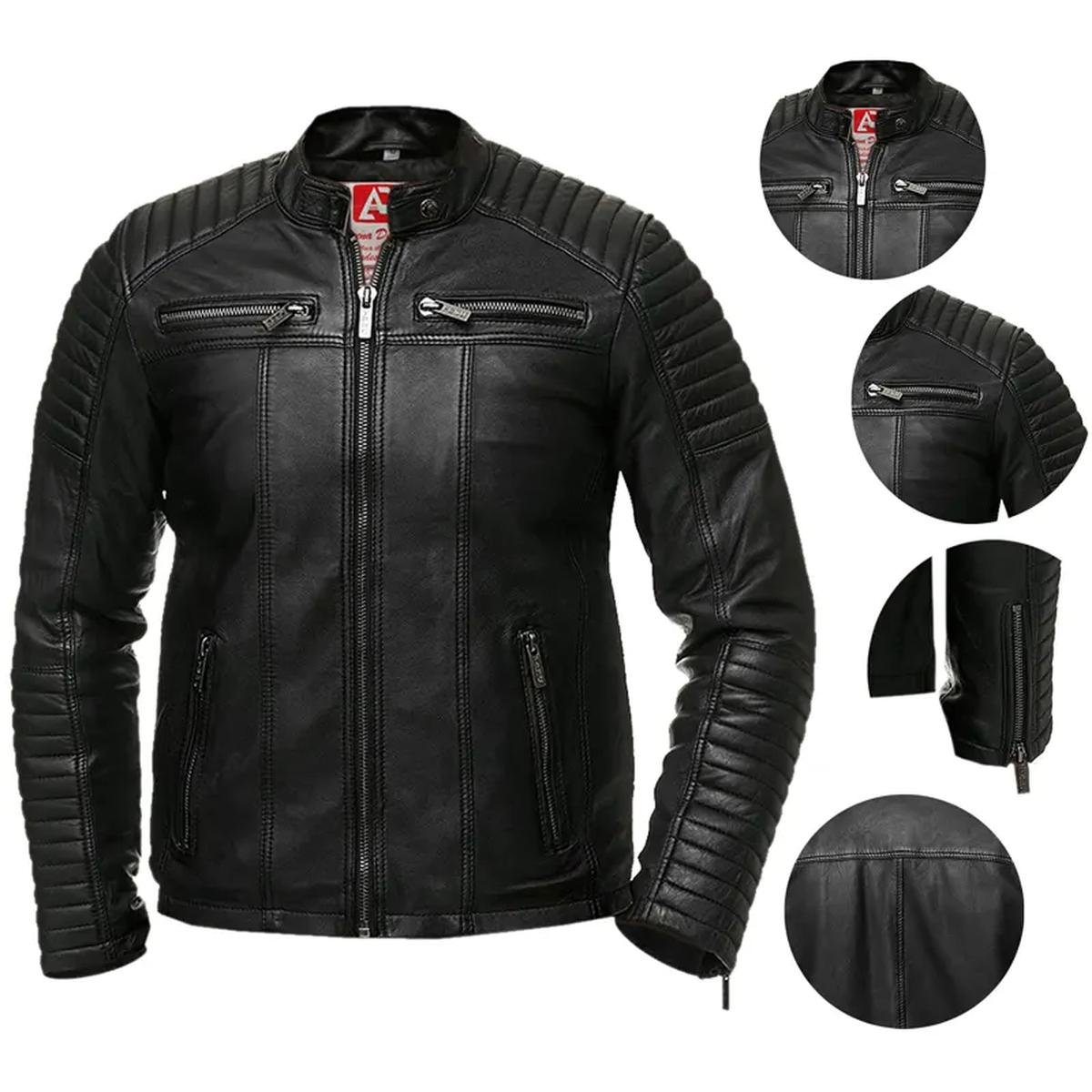Giacca da motociclista vintage retrò da uomo in vera pelle, nera