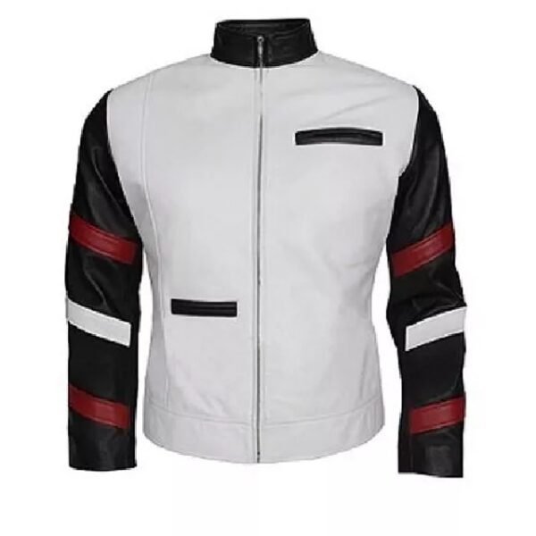 La sua combinazione audace di pelle bianca, maniche nere e strisce racing rosse/bianche è un omaggio immediatamente riconoscibile al leggendario Bruce Lee, catturando la sua dinamicità e il suo stile audace.