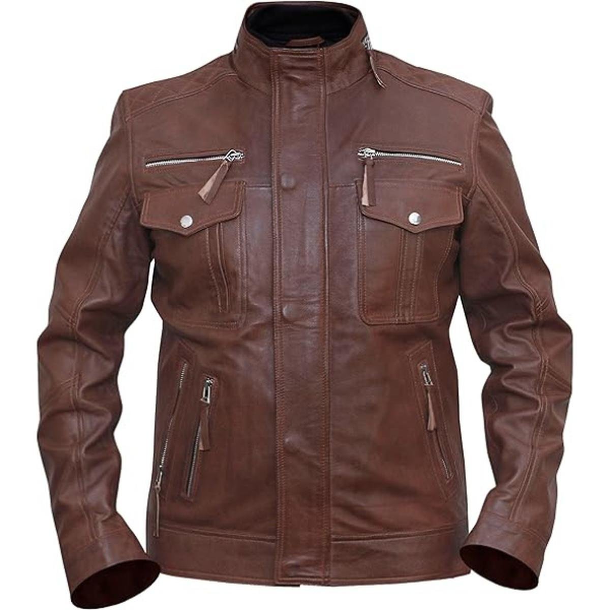 Aggiungi un tocco di eleganza senza tempo al tuo guardaroba. Ordina ora la tua Giacca Cafe Racer in pelle marrone.