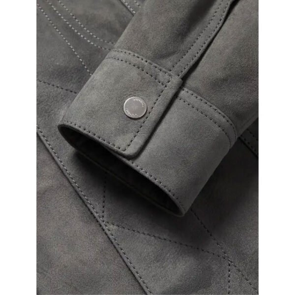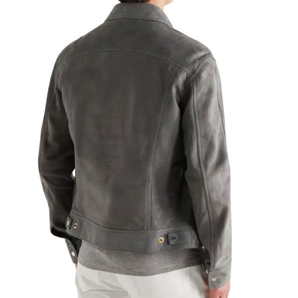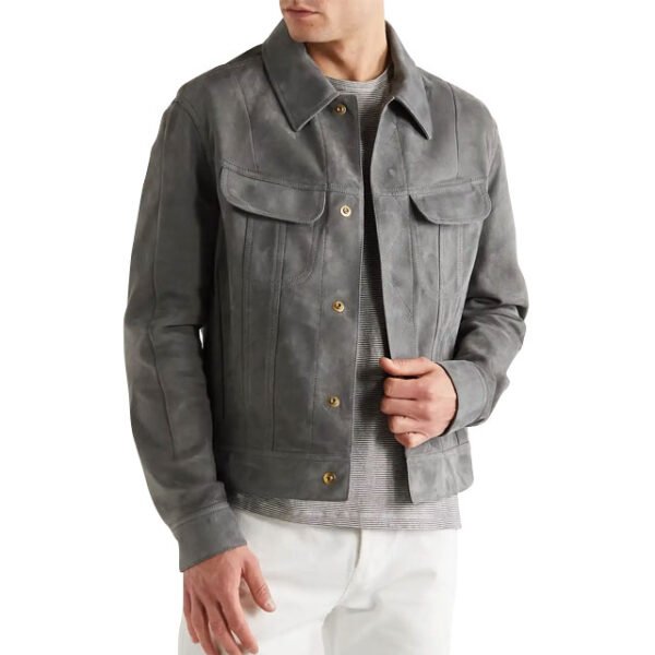 Giacca Uomo in Vera Pelle Scamosciata Slim Fit – Stile Trucker Grigio