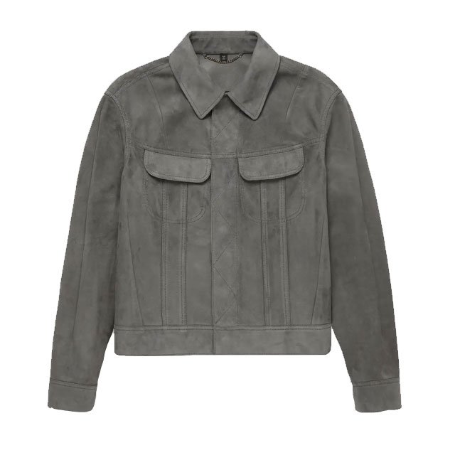 L’eleganza senza tempo del classico trucker, reinventata in morbida pelle scamosciata.