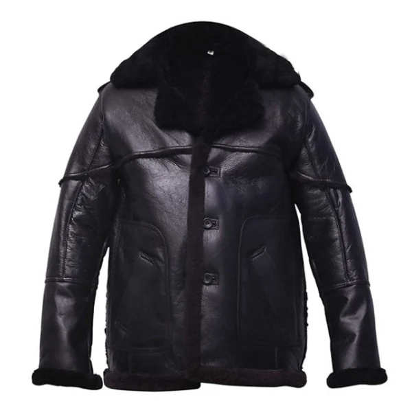 Giacca da uomo in vera pelle di pecora con pelliccia nera