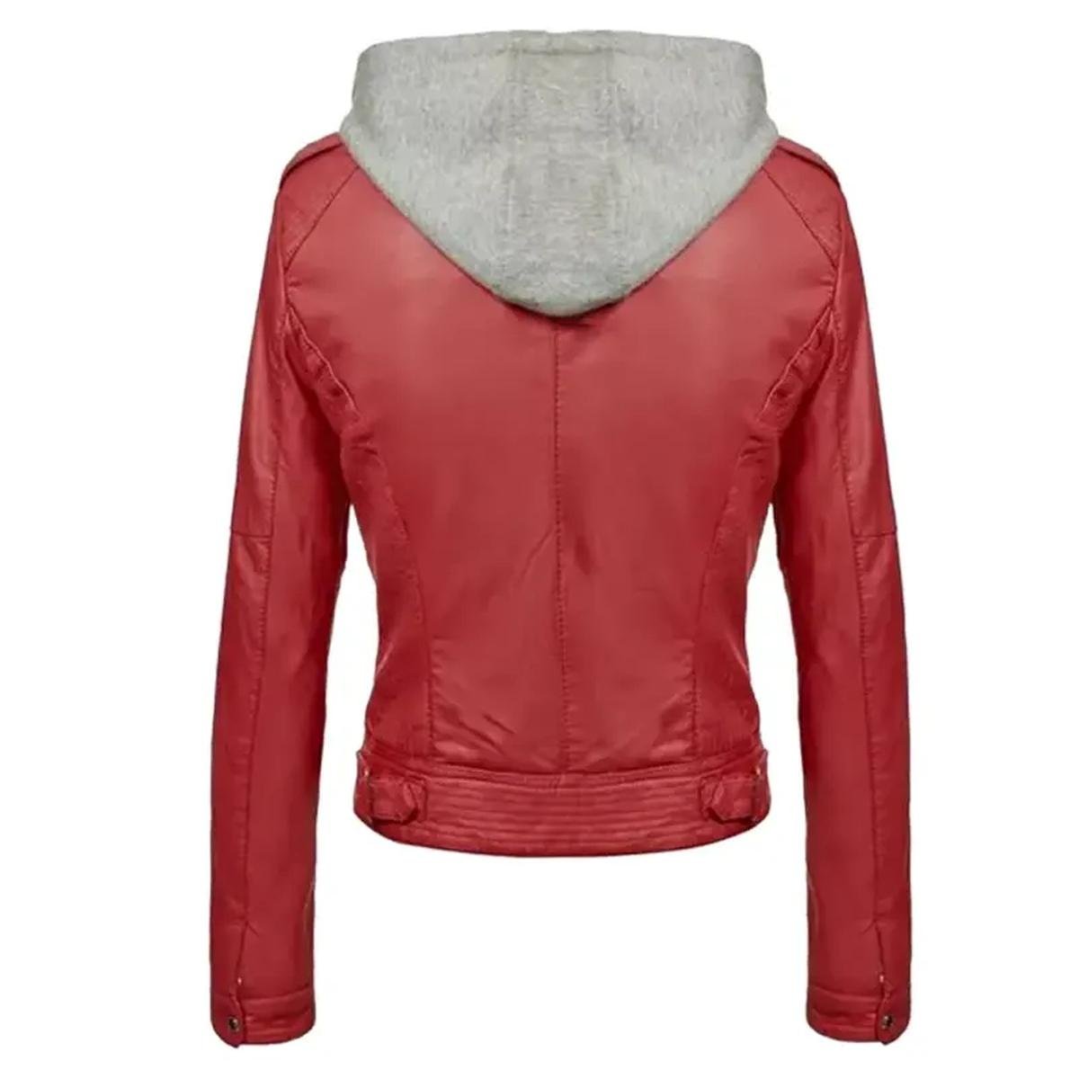 L’incontro perfetto tra l’eleganza audace della pelle rossa e la praticità moderna del cappuccio.
