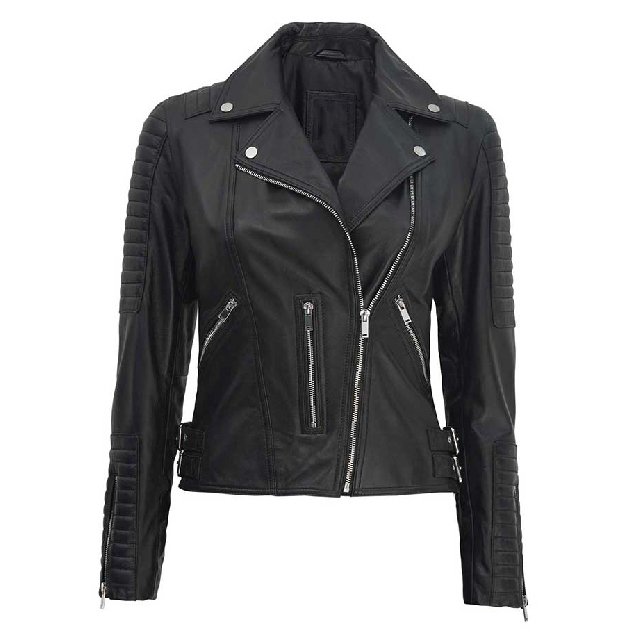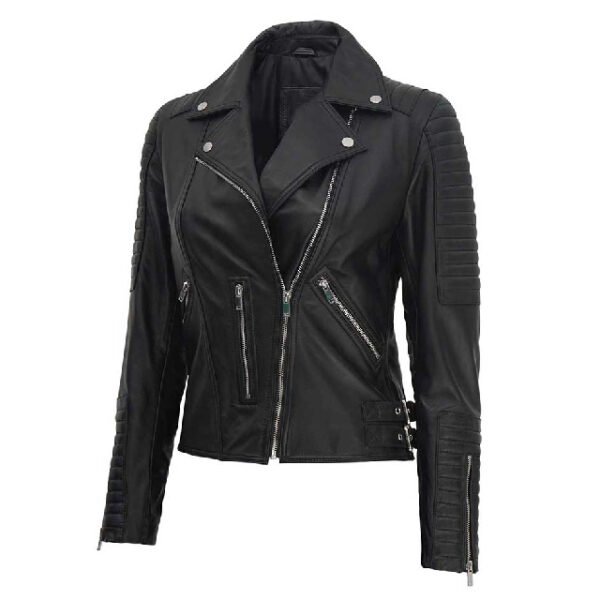 Giacca in Pelle da Motociclista Nera di Classe da Donna