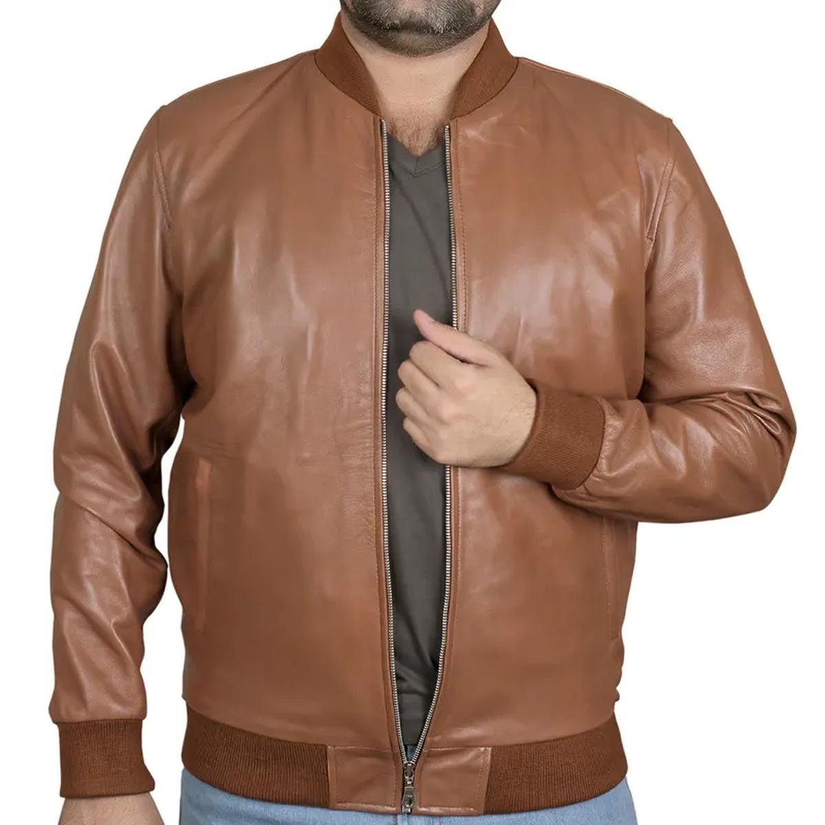 Giacca in Pelle da Uomo Stile Bomber Biker Slim Fit