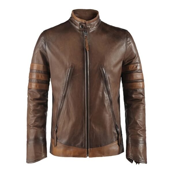 La replica fedele della giacca indossata da Hugh Jackman, con dettagli a strisce e pannelli unici che la rendono immediatamente riconoscibile.