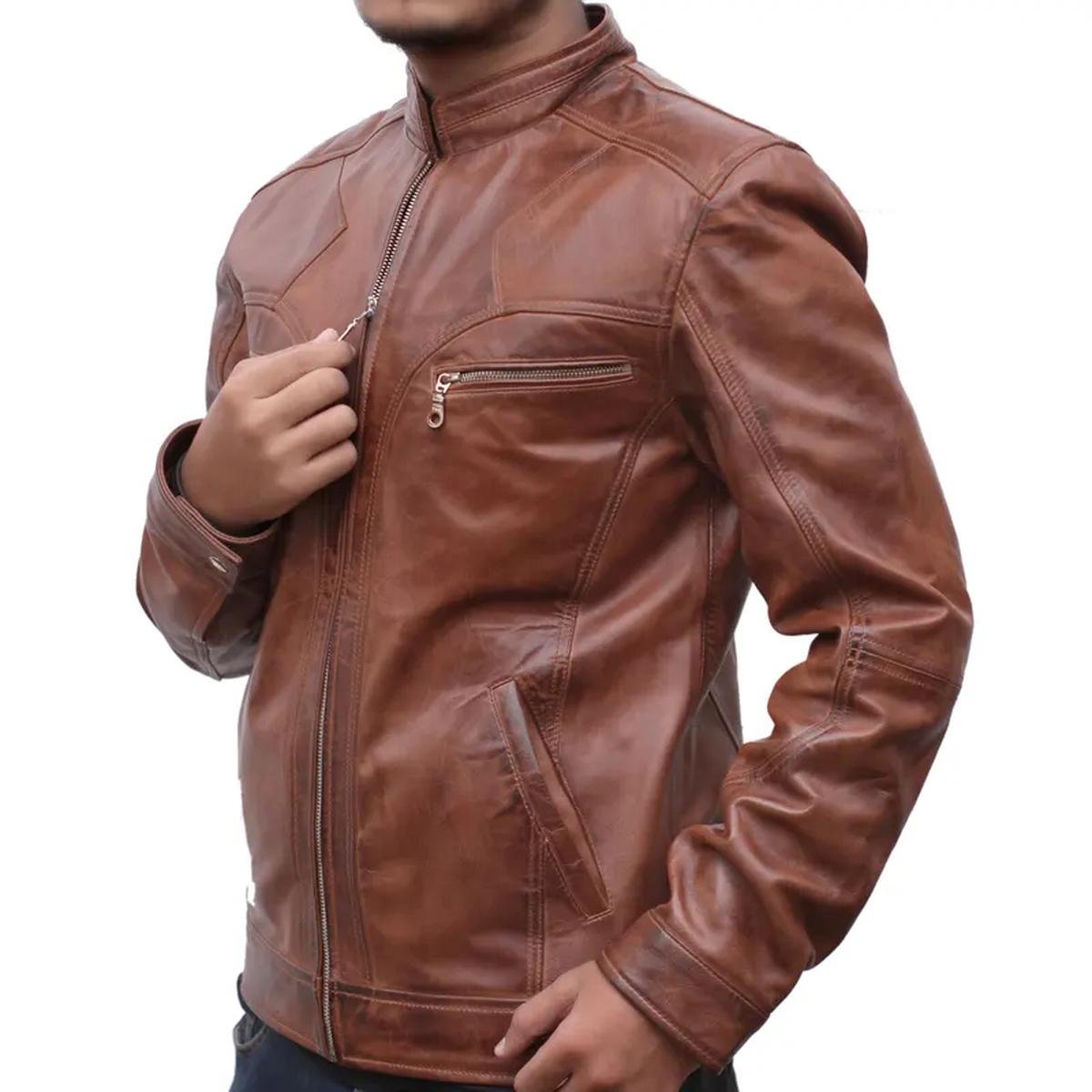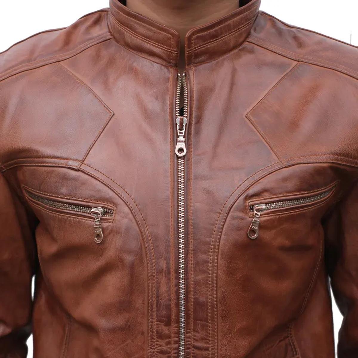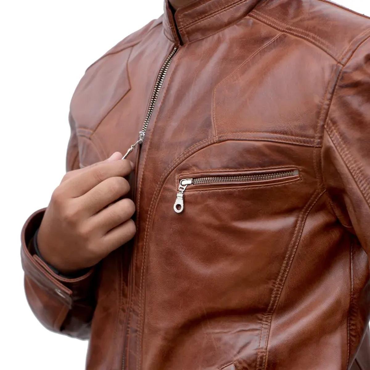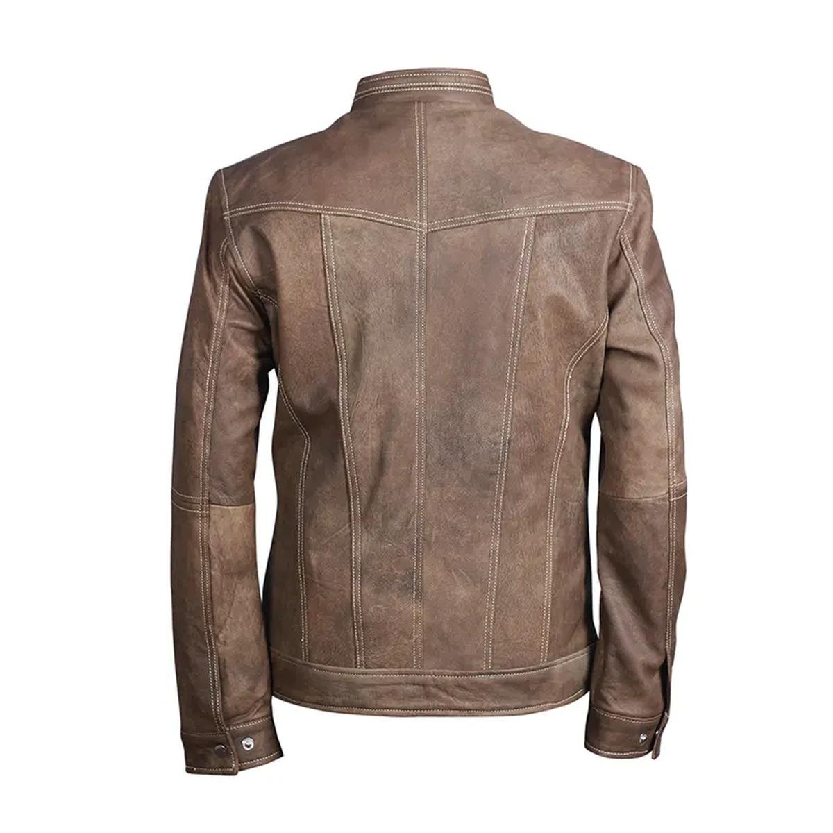Realizzata in vera pelle di montone di Grado A con una finitura invecchiata, questa giacca vanta una morbidezza eccezionale e un carattere vissuto che migliora con l’età e l’uso.