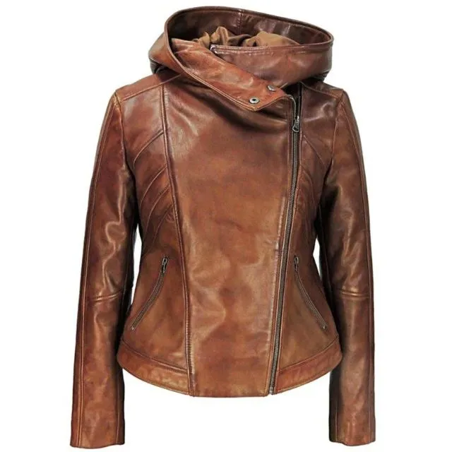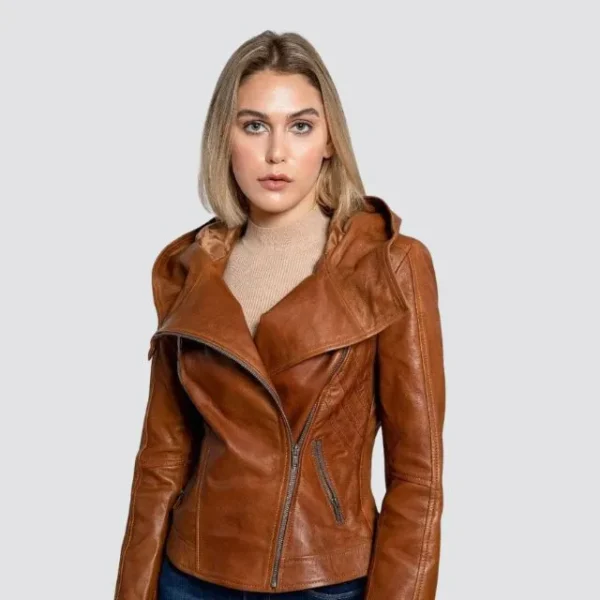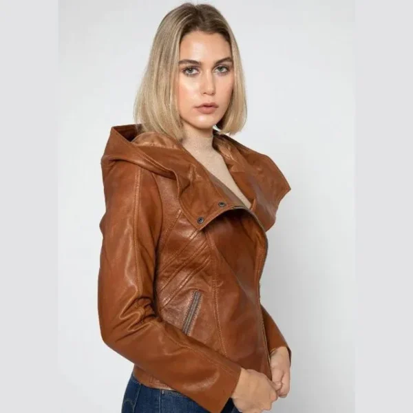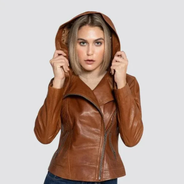 Giacca in Pelle Marrone con Cappuccio Sasha da Donna