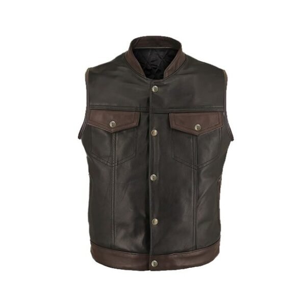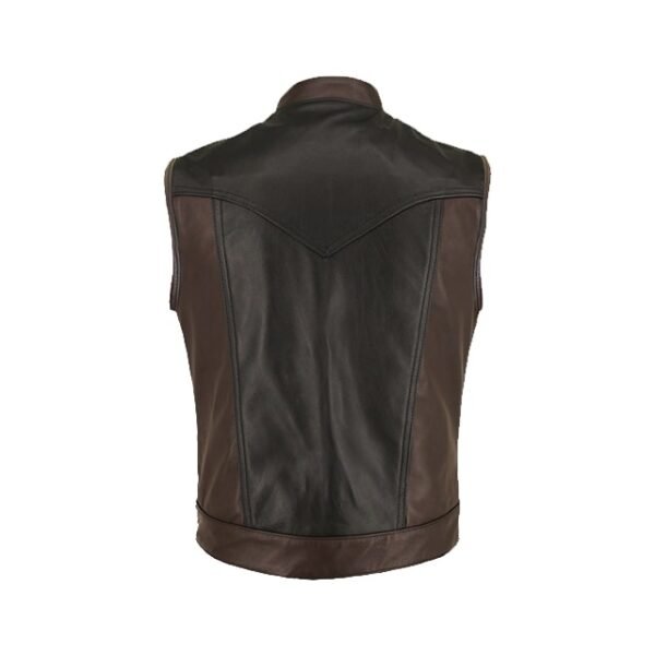 Realizzato con 100% vera pelle premium, questo gilet offre una sensazione di morbidezza e una durata eccezionale. La sapiente combinazione di due tonalità di marrone crea un contrasto visivo accattivante, mentre le finiture artigianali ne esaltano l’unicità.