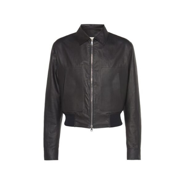 Giubbotto Bomber in Vera Pelle Nero Opaco