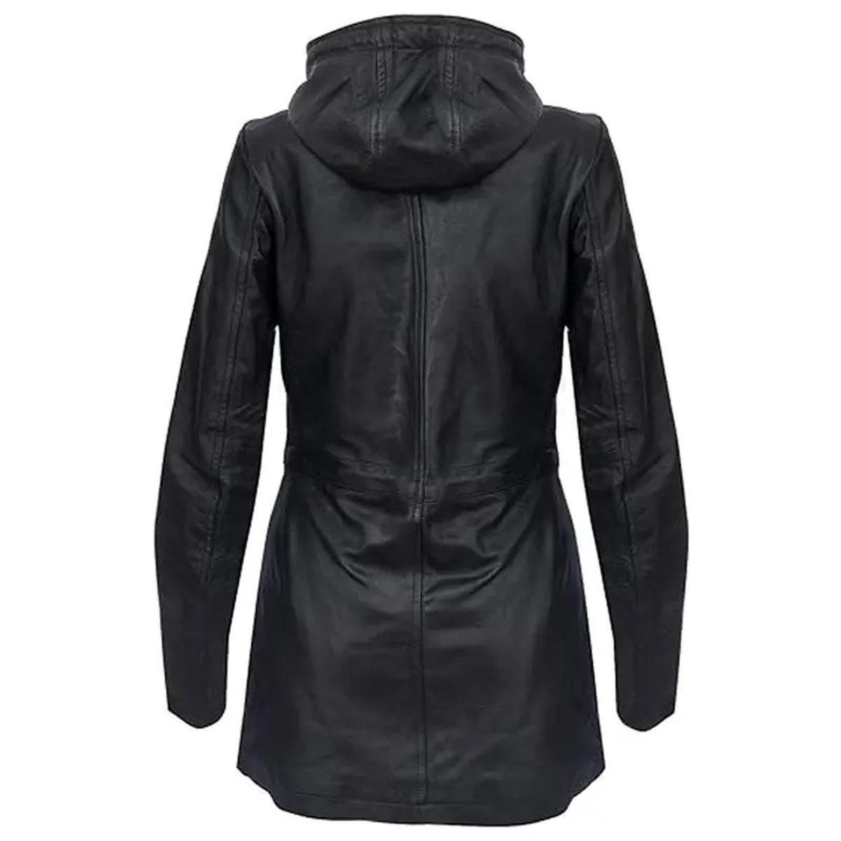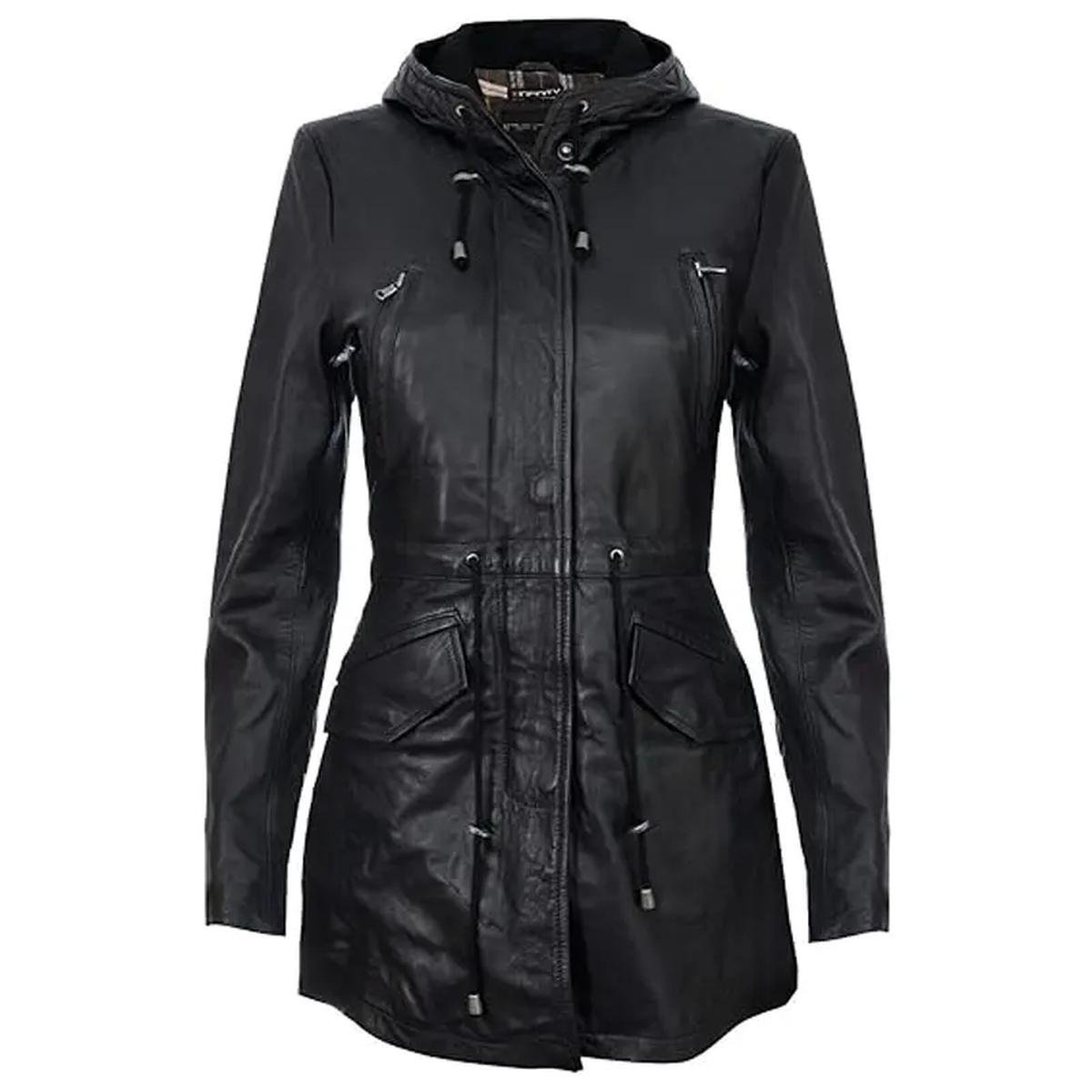 Parka Trench Nero in Vera Pelle con Cappuccio Staccabile