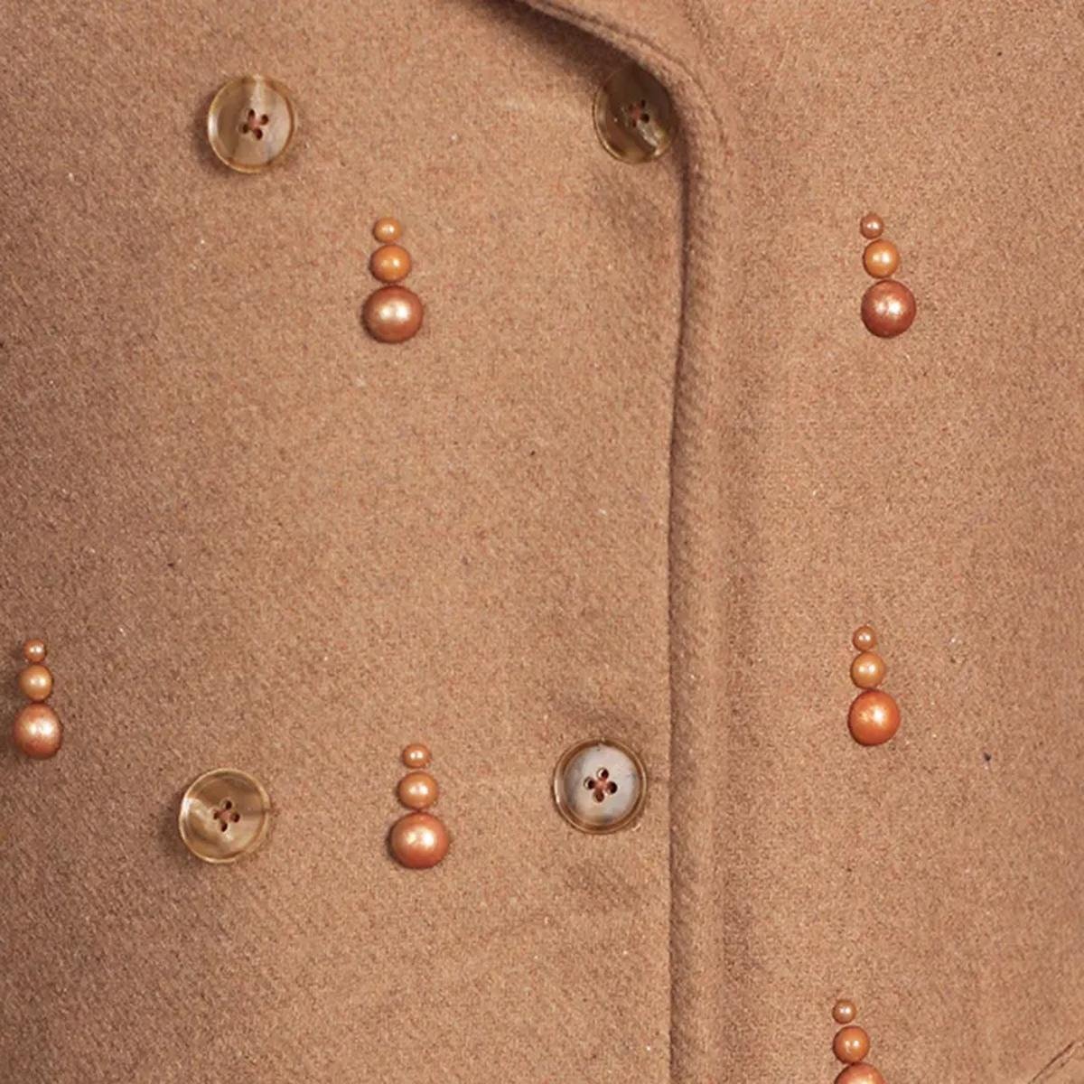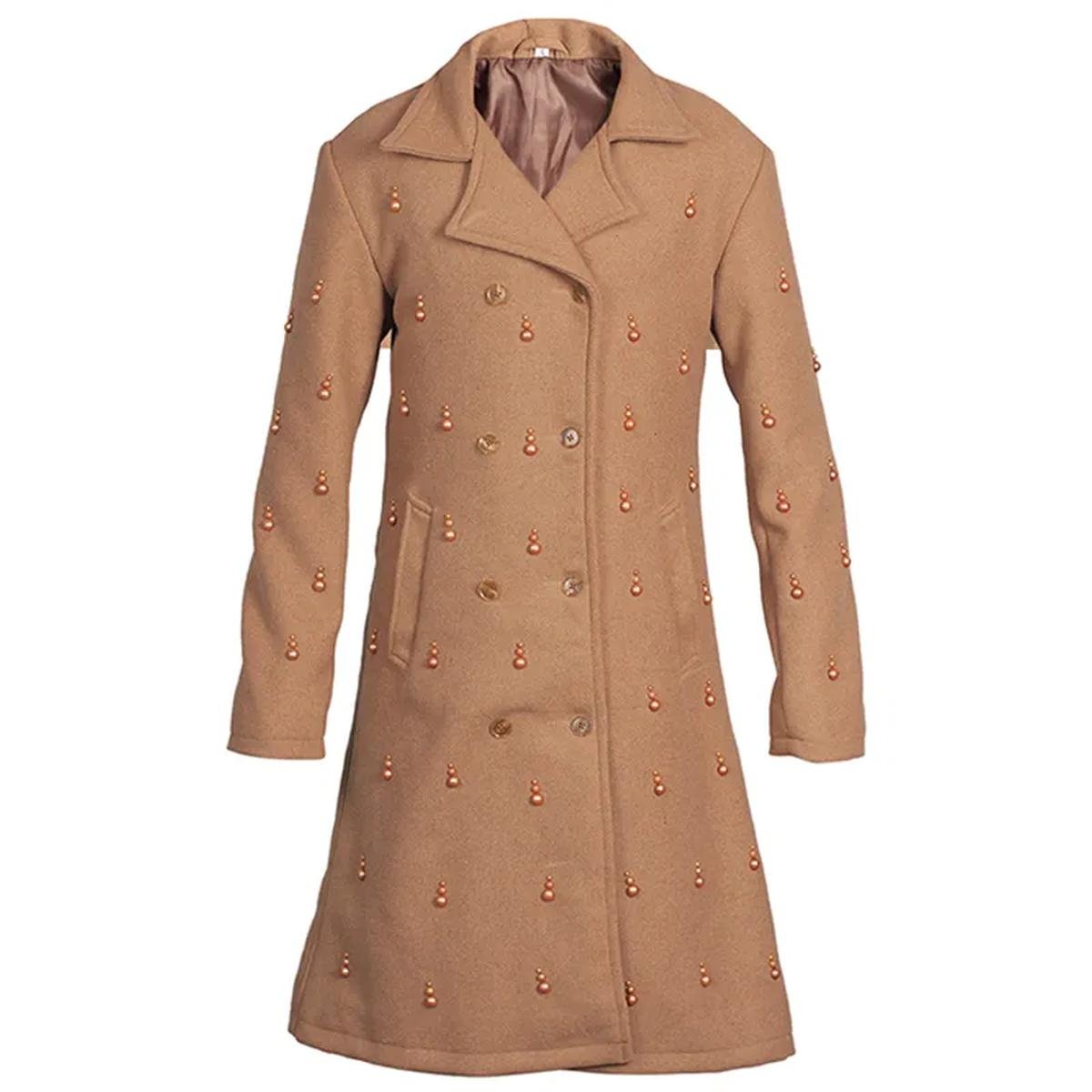 Trench in lana marrone decorato da donna